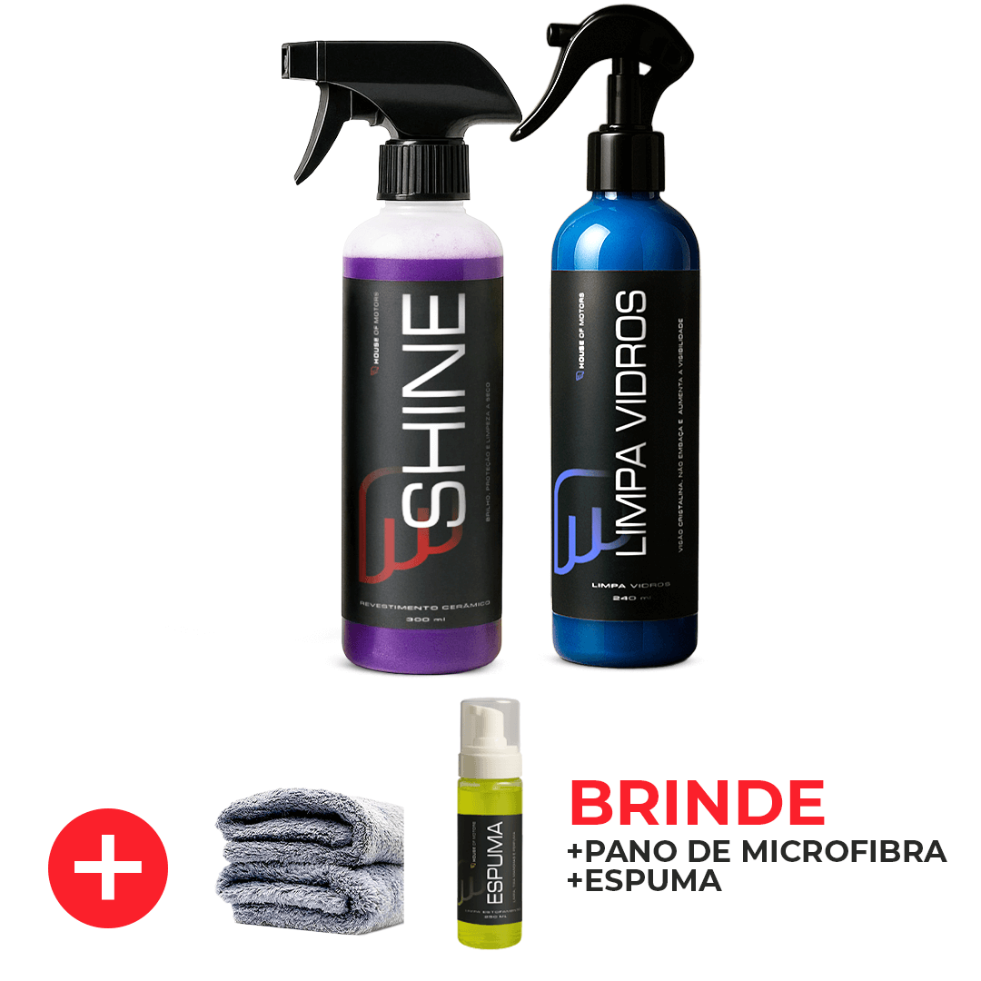 Shine + Limpa Vidros + Brindes Espuma e Pano de Microfibra